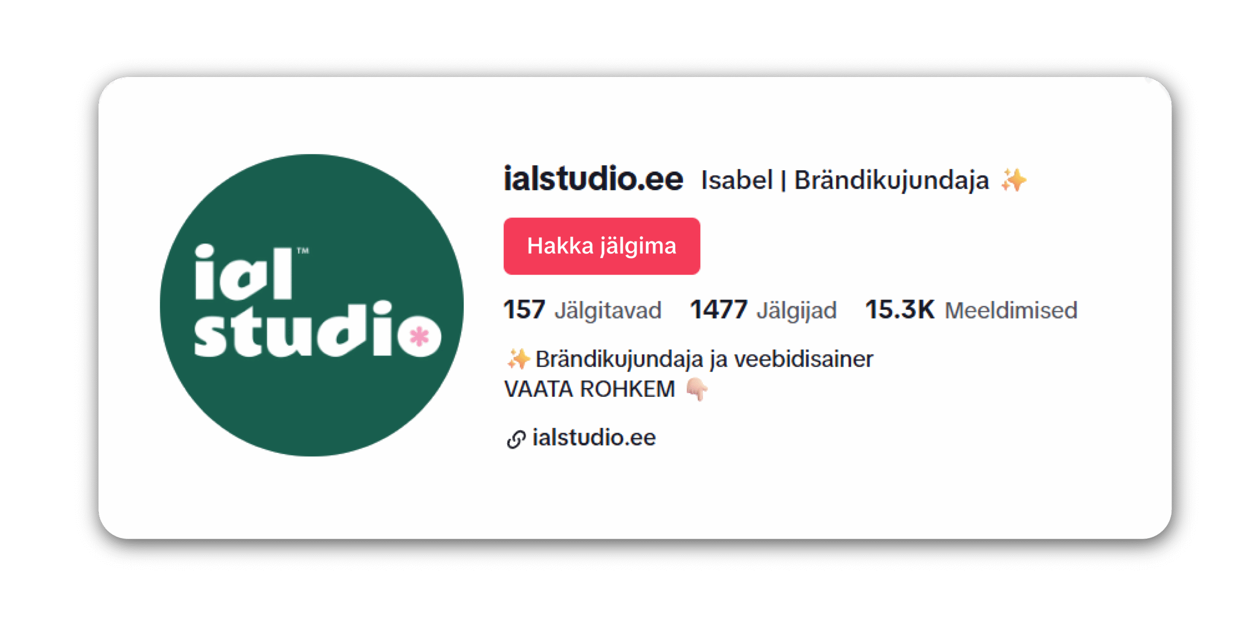 Üle tuhande inimese on otsustanud jälgida minu teekonda disainimaailmas, kus jagan detailselt oma disainiprotsesse, projektide telgitaguseid, kasulikke nõuandeid ja muud põnevat! Kui soovid minuga liituda ja sellest osa saada, siis jälgi mind TikTokis!