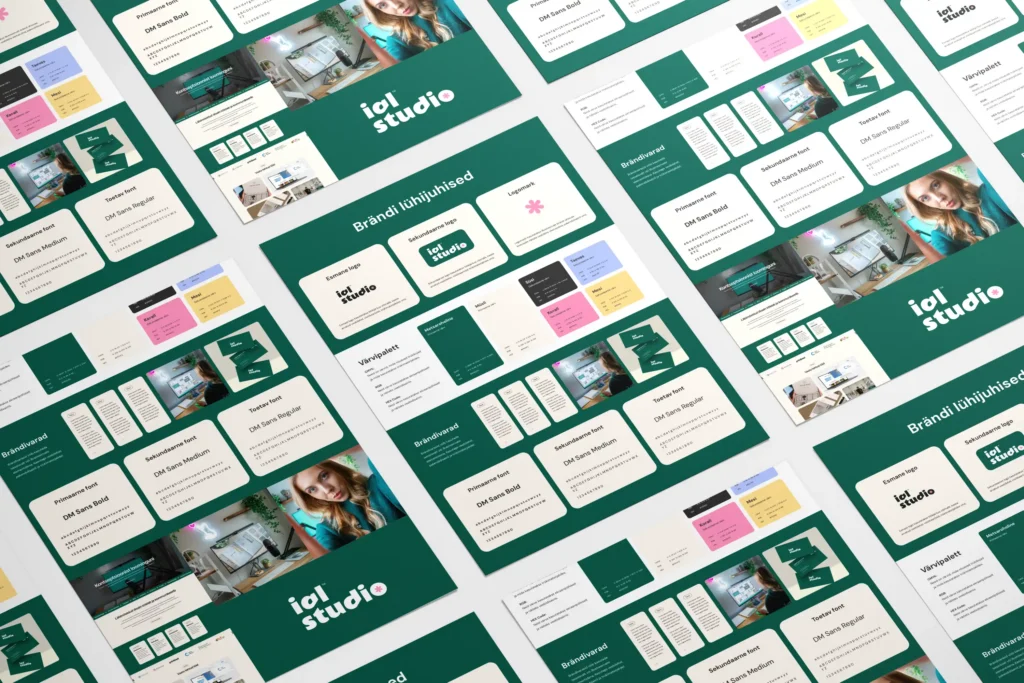 - 1 lk koos ruumiga logole, värvipaletile, fontidele, brändivaradele ja mockup’idele;